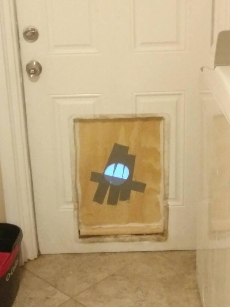 I know I know I know. Cheaping out on something as important as windows? But I figure that if they fall apart in ten years and I have to replace them all again, I’m still ahead of the game with HVAC savings. But I don’t think they’re going to. They’re just made here in Tucson by locals and cost of living here is lower than in many parts of the country, plus no shipping costs. They’re vinyl with argon gas between the panes with a U-Factor of .27 and a solar heat gain coefficient of .25. They are guaranteed to meet or exceed national thermal testing standards. I figure I’ll be dead before the windows need replaced again. It’s a reasonable gamble considering our budget. Also, Jesus and his guy are really good at this stuff. They replaced all the windows and two sliders in less than three days, including brick work, plaster repairs inside, and clean-up. Seriously. I was so impressed I hired Jesus to install replacement doors on the front and side of the house… because you can see daylight around the front door. (a lot of it) And of course the dog door / interim dryer vent / duct tape thing.